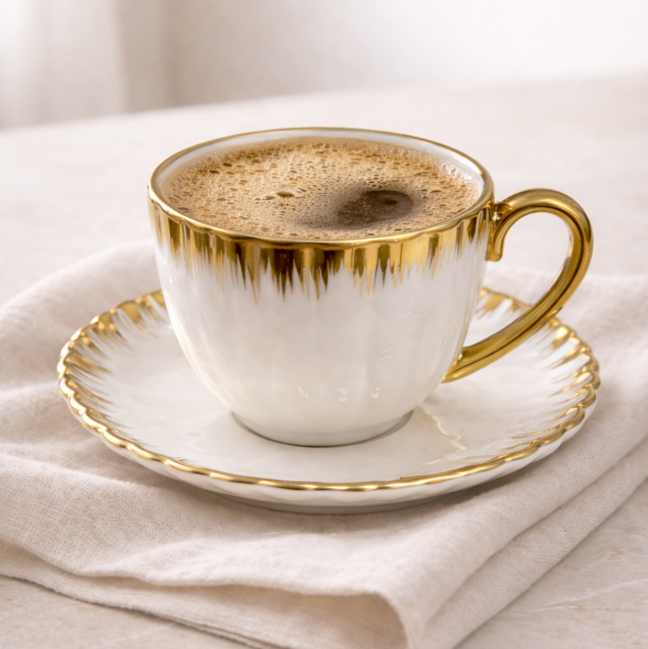 Ky filxhan elegant prej porcelani përfaqëson një kombinim të përkryer mes finesës klasike dhe luksit modern. I punuar me kujdes nga porcelan cilësor, ai dallohet për formën e tij të rafinuar dhe përfundimin e lëmuar, që i jep një ndjesi të këndshme në përdorim të përditshëm.